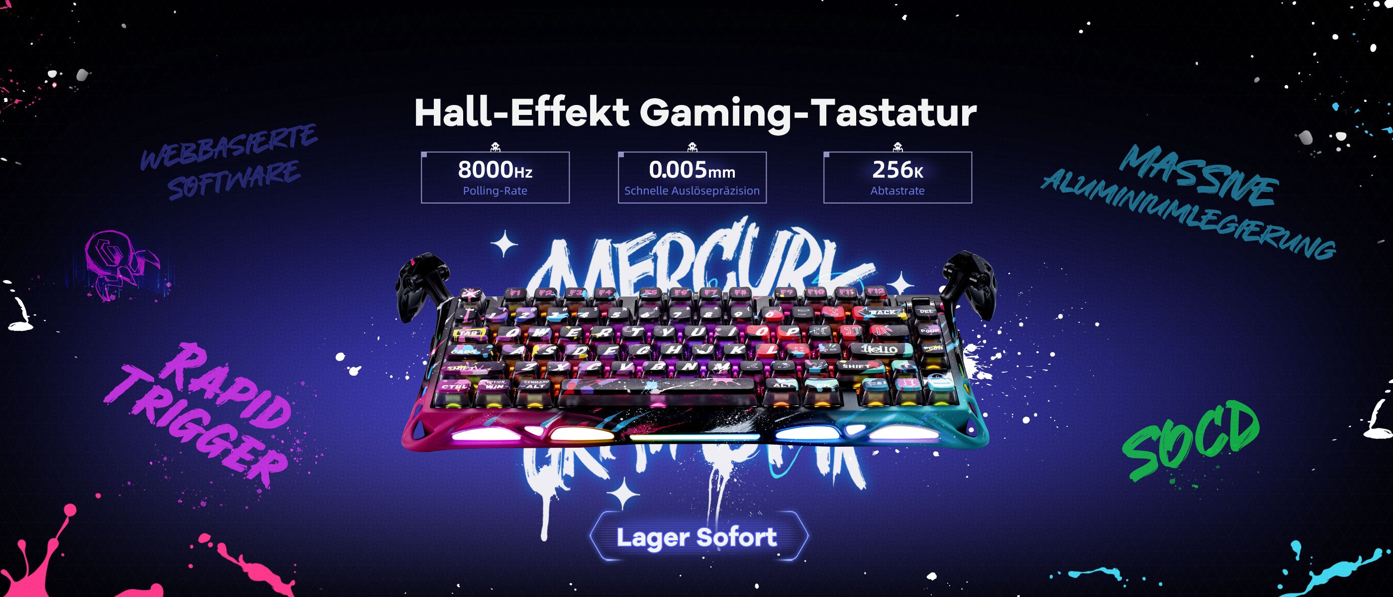 8 Monate mit der GravaStar Mercury K1 Pro – Galaxie Schwarz – sie ist mein Game-Changer. Kailh-Schalter: null Delay, selbst bei DOTA2-Letzten-Hits. 75%-Formfaktor: platzsparend, behält alle Funktionen. RGB sync mit meinem Stream – Zuschauer loben die Lichtshow. Und sie überlebt Energy-Drinks (Test: 2 Wochen alt, läuft noch). 8000 mAh Akku: 1 Woche ohne Laden. Plus die Mercury X Pro 8K Maus (49g, PAW3950-Sensor): sie folgt jedem Befehl – im Kampf unschlagbar. Für Profis: K1 Pro + X Pro 8K =unbesiegbar.