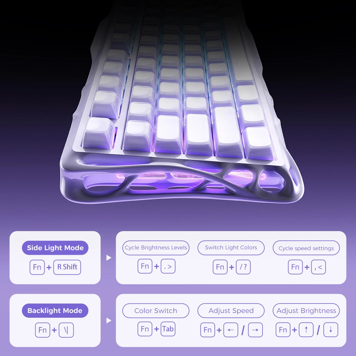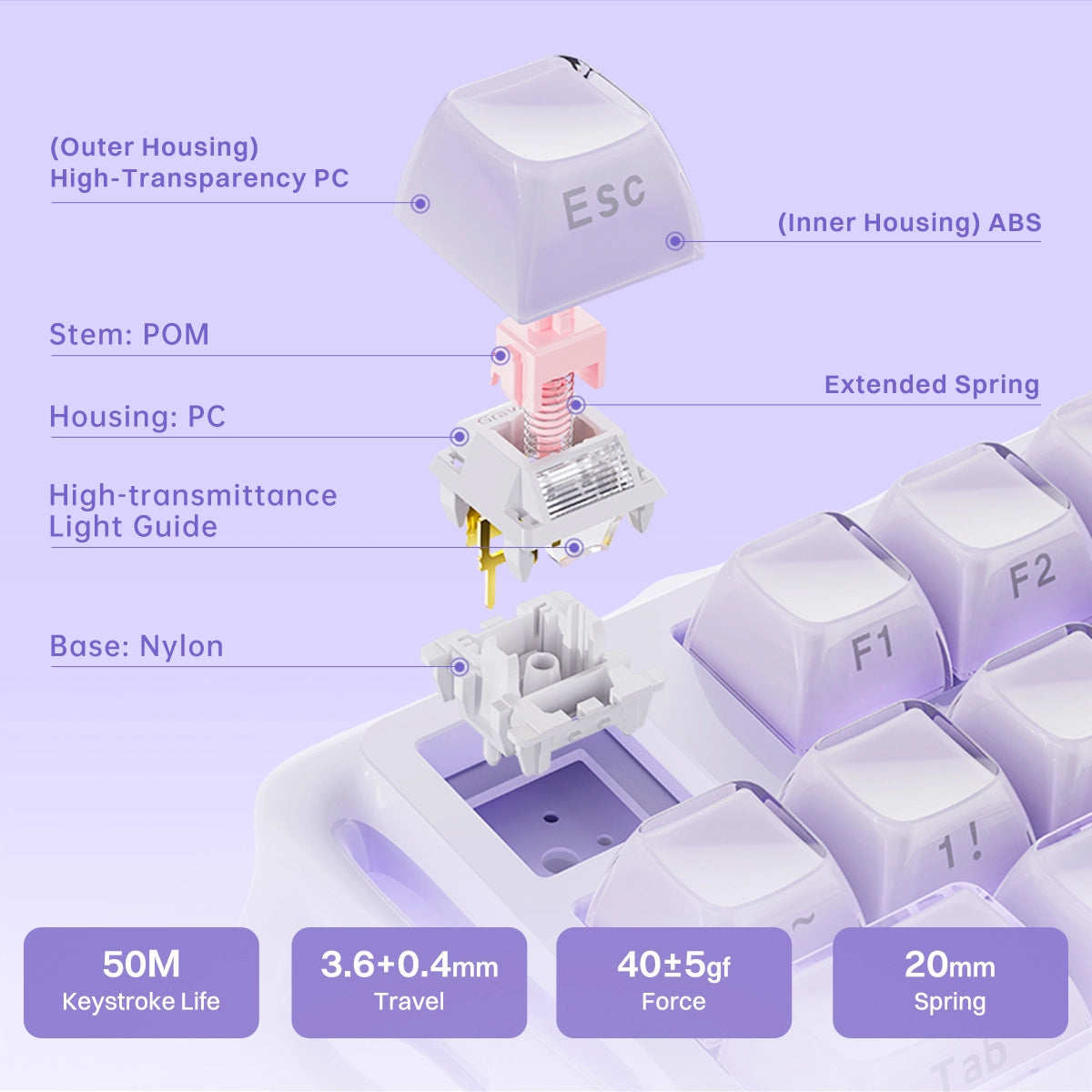 The Mercury K1 delivers a refined acoustic signature – deep, satisfying thump at moderate volume with clear, responsive feedback. Swap switches or keycaps to dial in your perfect sound. No modding required.