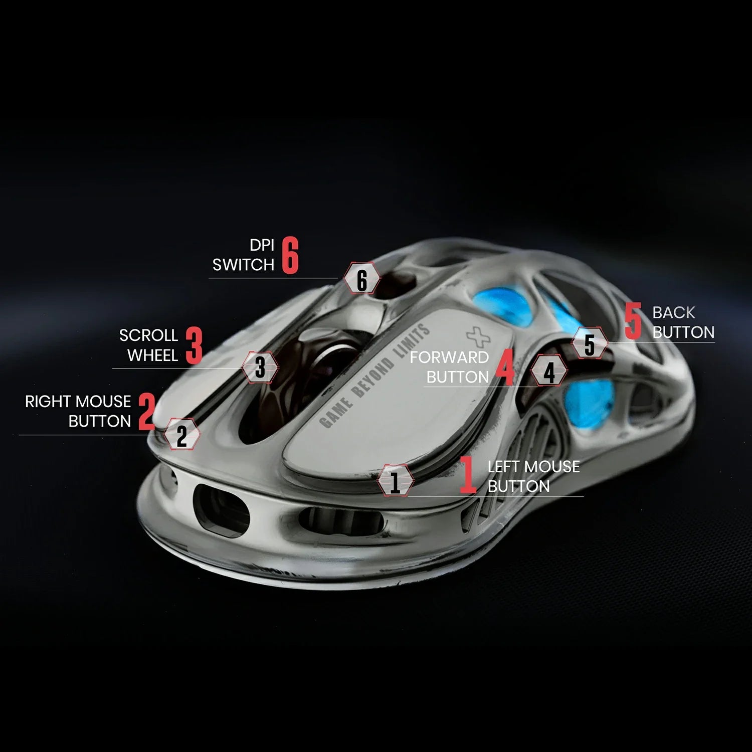 Ambidextrous form, 26,000 DPI, 4,000/1,000Hz polling rate