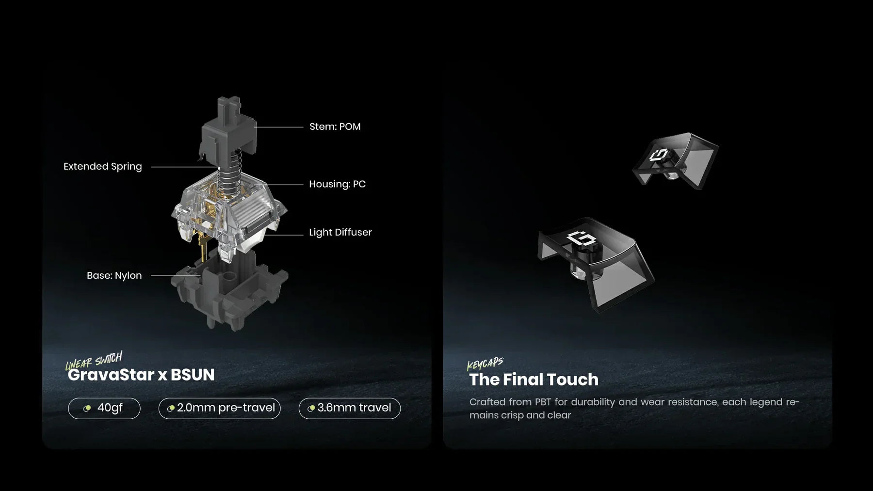 Transparenz: Klare Tastenkappen zeigen interne Beleuchtungseffekte