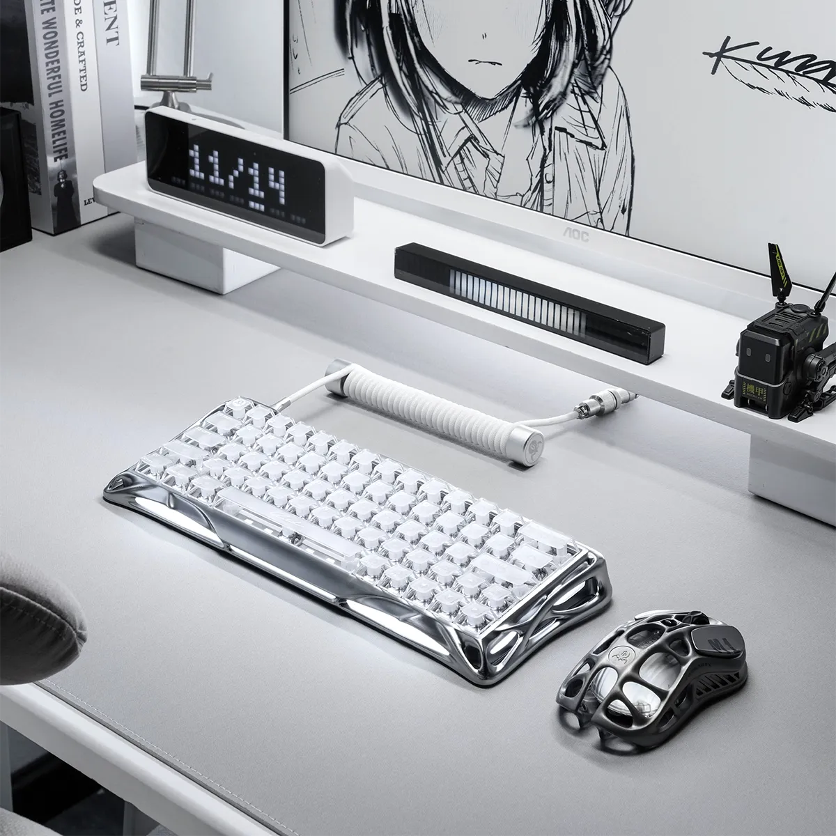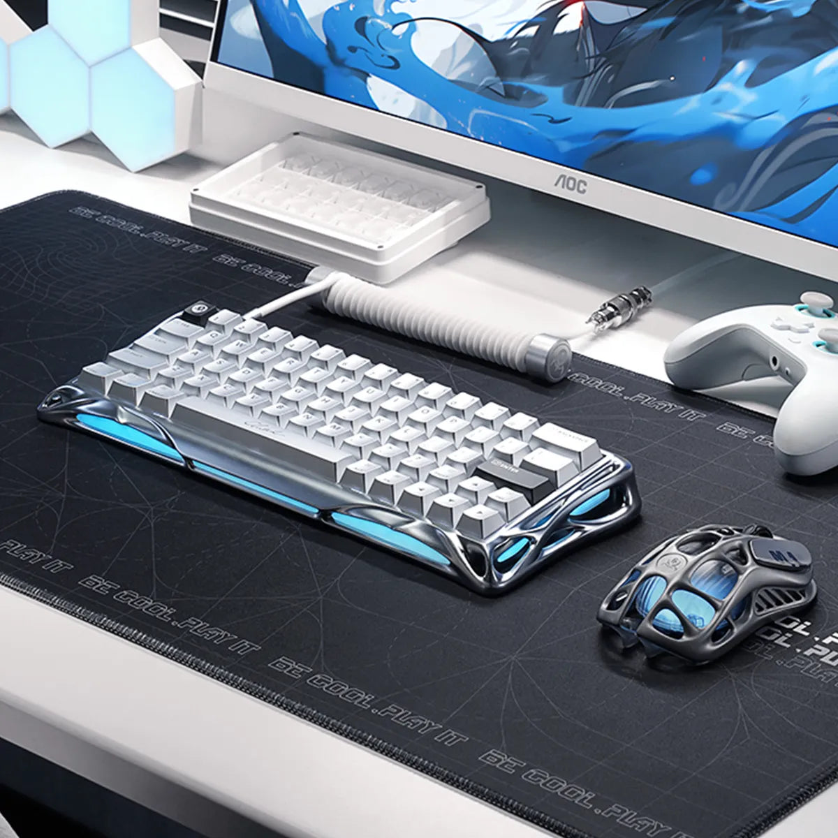 Eine Mercury V60 Pro Hall-Effekt-Gaming-Tastatur, eine Mercury X Pro 8K Wireless Gaming-Maus sowie ein GravaStar Spiral-Aviator-USB-Kabel.