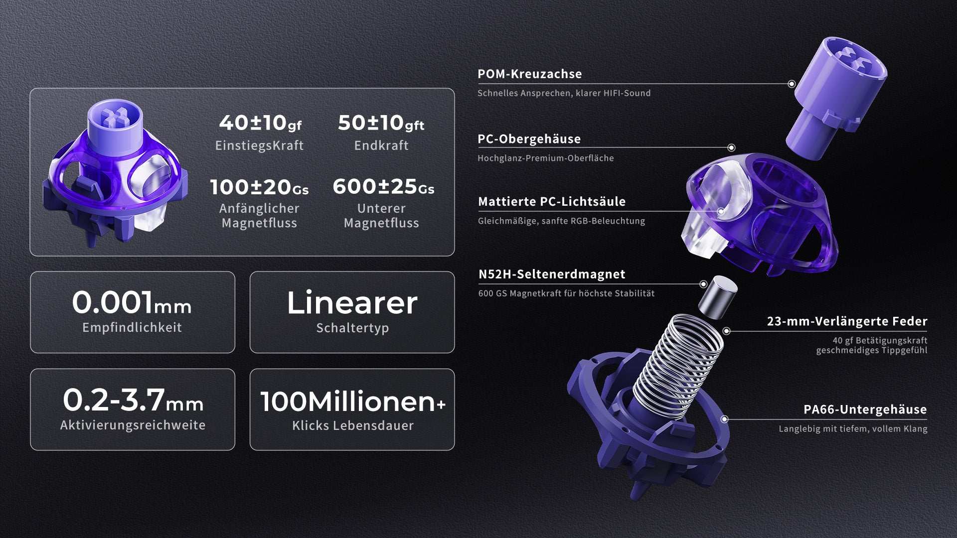 Unsere neueste Innovation erkennt die stärker gedrückte Taste zwischen zwei Eingaben – für schnellere Gegenbewegungen und perfekte Timing-Kontrolle.