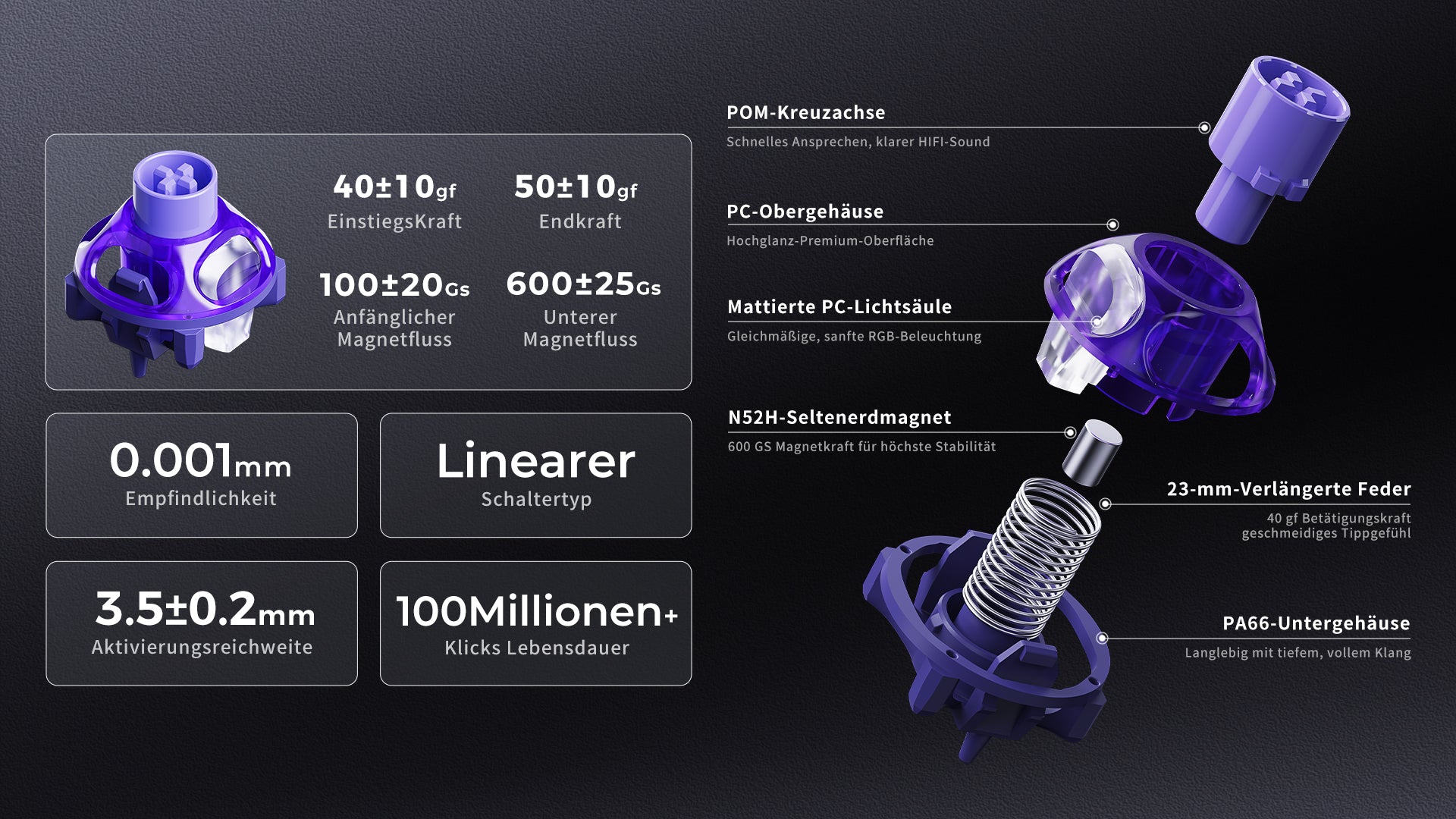 Magnetschalter + Gasket-Struktur für komfortables Langzeit-Gaming